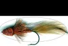 A mobile tailed baitfish pattern tied with organza and synthetic fibres |