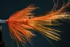 This muddler is tied on a small stainless Mustad hook using orange deer hair, orange dyed grizzly hackle and natural rabbit dubbing with a bit of orange flash mixed in. A small beauty indeed and sooo easy to see at night. |